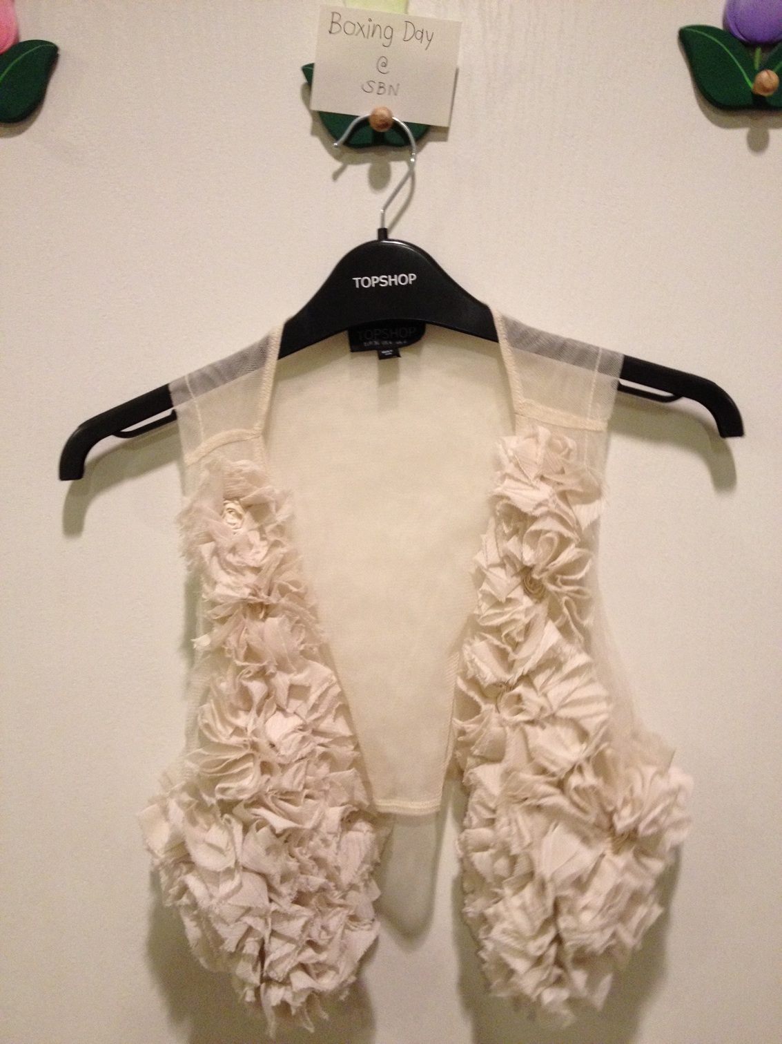 รายการที่สอง เสื้อกั๊กดอกกุหลาบ ไซส์ 8 UK/4 US เหมาะกับเสื้อผ้าทุกแนวค่ะ แนววินเทช แนวSmartแบบใส่กับเสื้อขาวกางเกงยีนส์ หรือใส่กับMaxi Dressไปเดินทะเลชิวชิว ผ้าโปร่งใส่สบายเหมาะกับอากาศบ้านเราที่ร้อน นนนนน แบบบรรยายแล้วแม่ค้าก็รู้สึกยิ่งร้อนๆๆๆๆๆๆ ราคา 1,000 บาท