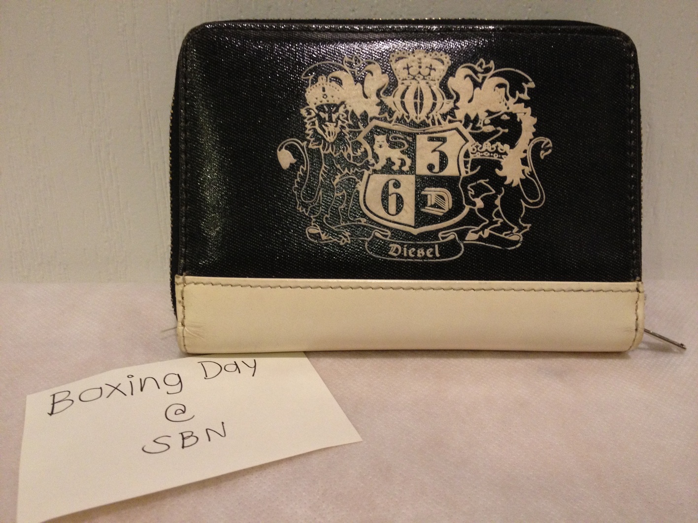 USED: DIESEL Wallet สภาพเยี่ยม มีรอยนิดเดียวเองค่ะ ดูแลรักษาง่าย ช่องใส่ธนบัตรสองชั้น และช่องใส่บัตรอีกมากมายเหมือนกระเป๋าโดเรม่อน ขอเสนอราคาแบบสุดๆที่ 1,000 บาท