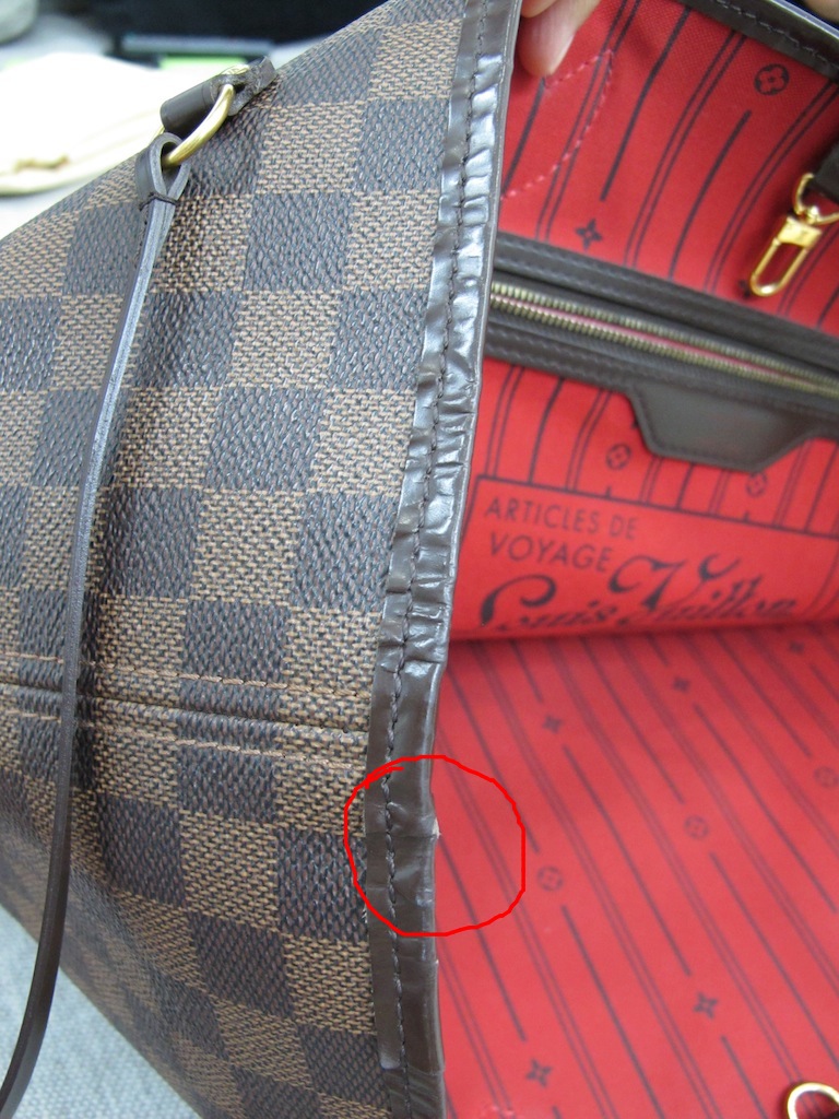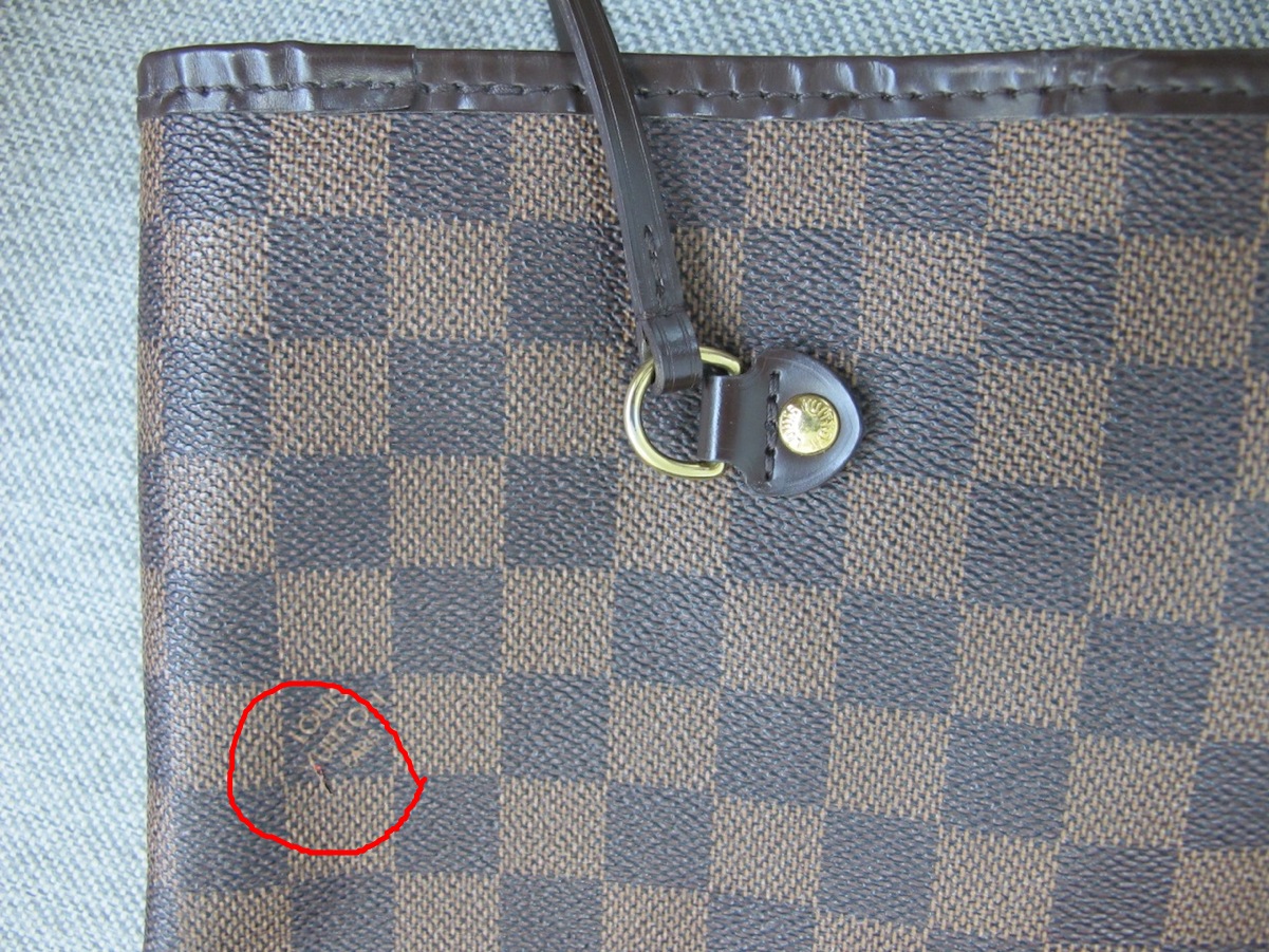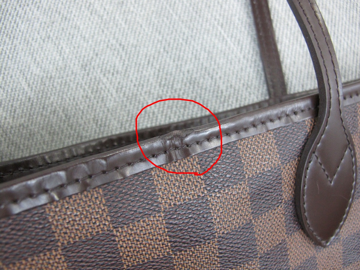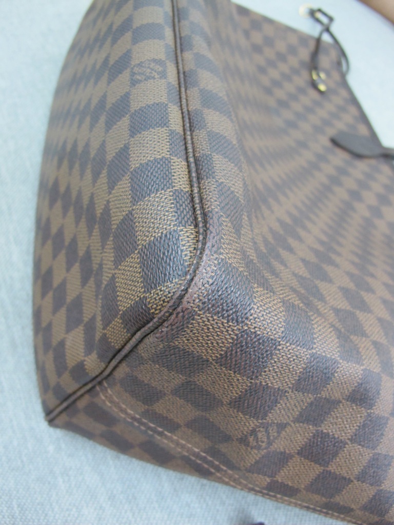 3. Used Neverfull GM Damier มีถุงผ้าให้ค่ะ สภาพภายนอกยังดูสวยพริ้งอยู่ค่ะ มีตำหนิตามรูปนะคะ ราคา 18,500 บาทค่ะ