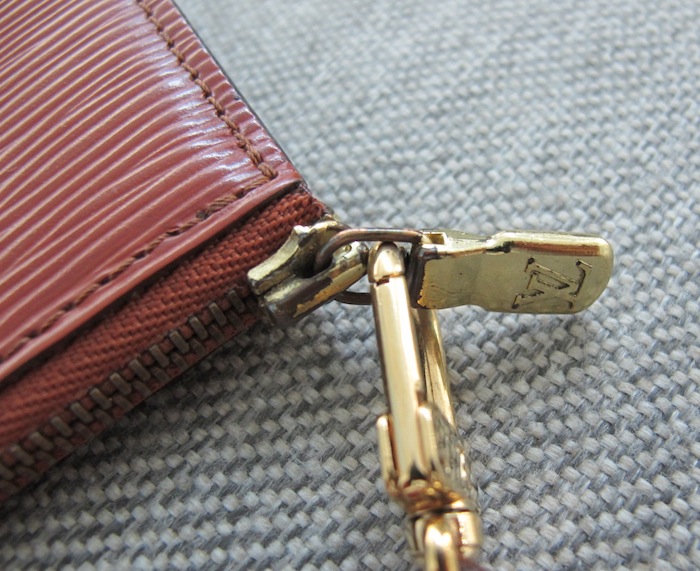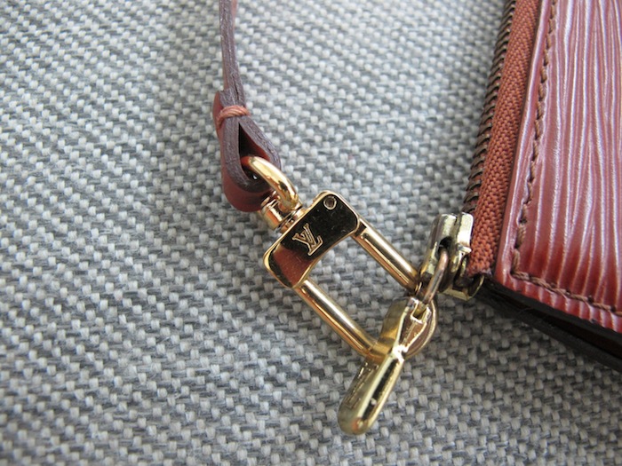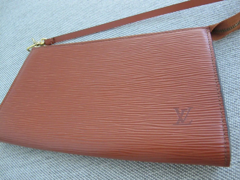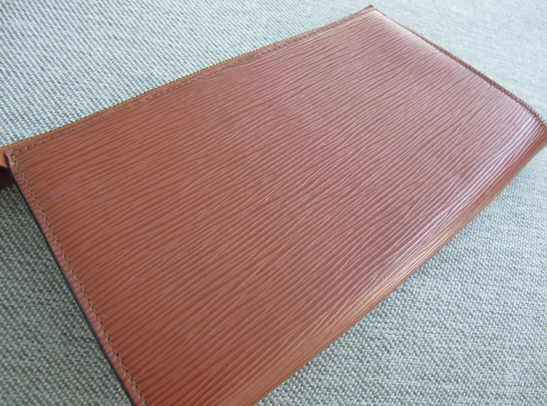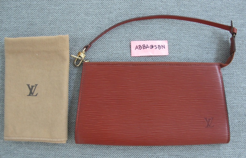 2. Used LV Epi Pochette Accessoires มีถุงผ้าให้ค่ะ สภาพยังดูดีอยู่ ลายไม้ยังลึกชัดเจนอยู่ ภายในสะอาด สายกระเป๋าแตกแล้วเอากาวหยอดไว้เนียนๆใช้ต่อไปได้ค่ะ ตะขอเกี่่ยวhardwareยังสวยวิ้ง แต่ตรงซิปนี่ลอกๆแล้วค่ะ เอาไปเลย 4,800 บาท