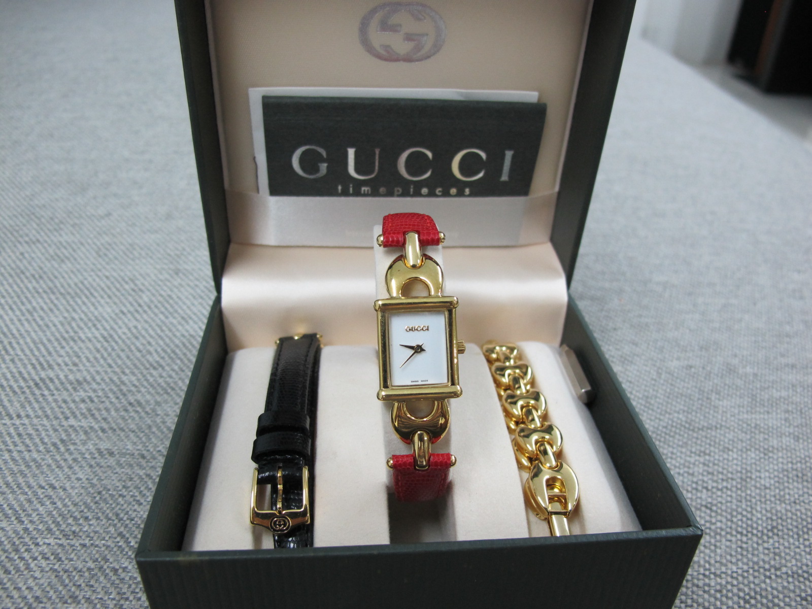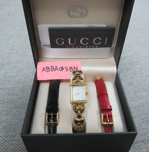 นาฬิกาUsed Gucciมีสายหนังแท้เปลี่ยน2ชุดค่ะ ตัวเรือนสีทองใหม่วิ้งมากเนื่องจากเพิ่งไปชุบใหม่อย่างดี5ไมครอนหมดไปหลายพันเลยค่ะ หน้าปัดไม่มีรอย เครื่องเดินปกติดีค่ะ ตัวสายหนังก็ใหม่มากๆเช่นกันค่ะ เหมือนได้นาฬิกาใหม่เลยค่ะ