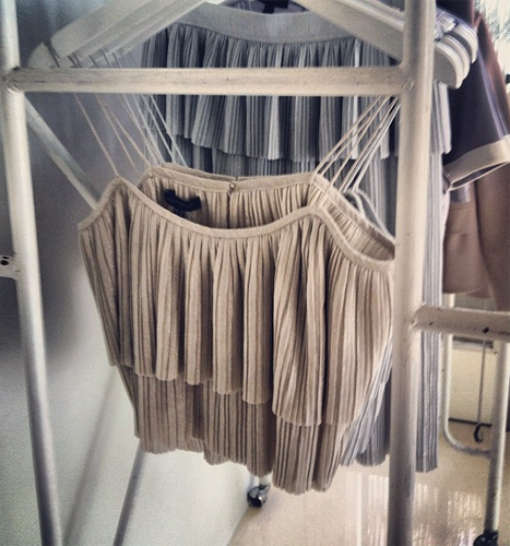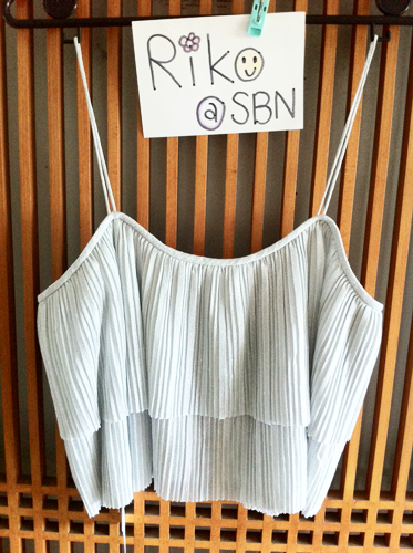 เสื้อสายเดี่ยวครอปอัดพลีท สีเทาผ้าเป็นประกายวิ๊งค์ๆ สวยมากนะคะ
