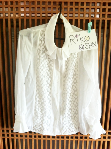เสื้อแขนยาวสีขาวปกจีบ แต่งลูกไม้ด้านหน้า