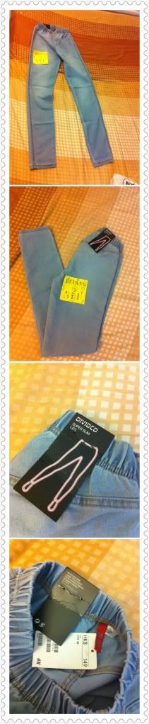 Legging from H&M สียีนอ่อนๆ ซื้อมาผิดไซส์ค่ะ ตัวนี้ไซส์ S เอวเปรยางยืดค่ะ ประมาณเอว 25-28 ค่ะ ของใหม่เลยค่ะยังไม่ดึงป้ายออกเลย 600 B.