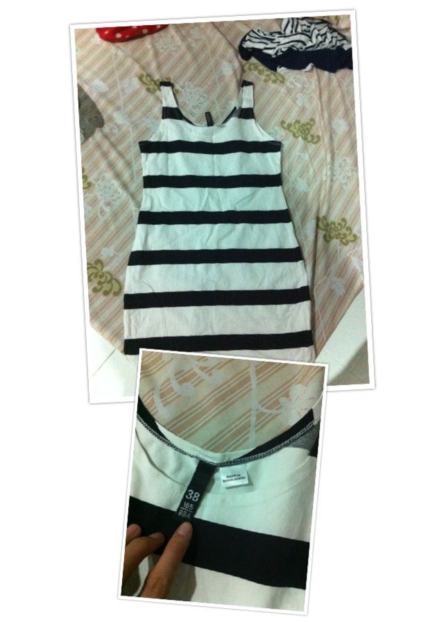 H&M ชุด dress ผ้ายืดเข้ารูป แขนกุด ลายทางสีน้ำเงิน ไซส์ 38 350 B.