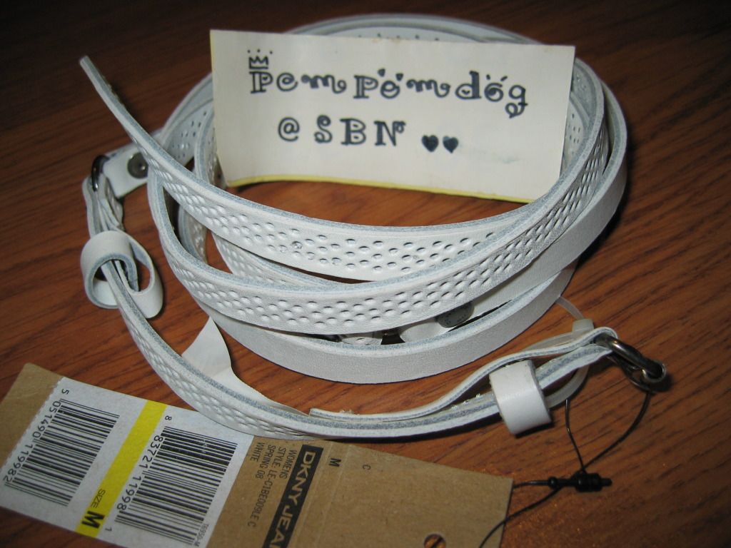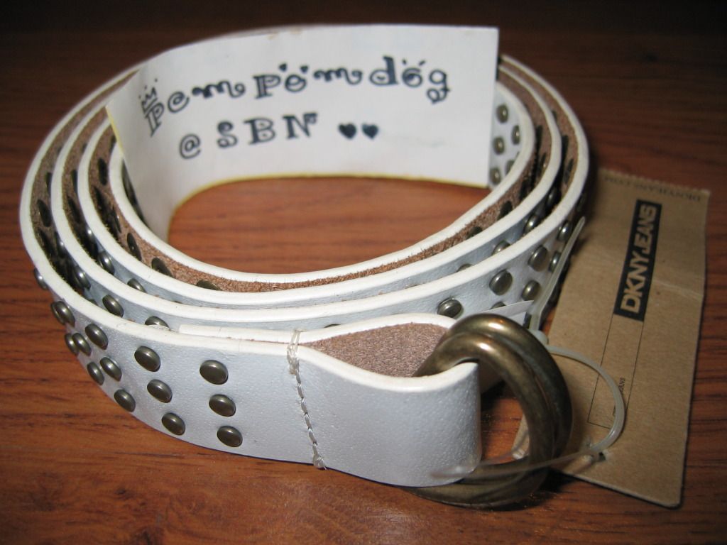 เข็มขัด DKNY สีขาว For men (ผู้หญิงก็ใส่ได้ค่ะ) ==> ขาย 1,200 บาท ==> ลดเหลือ 1,000 บาท