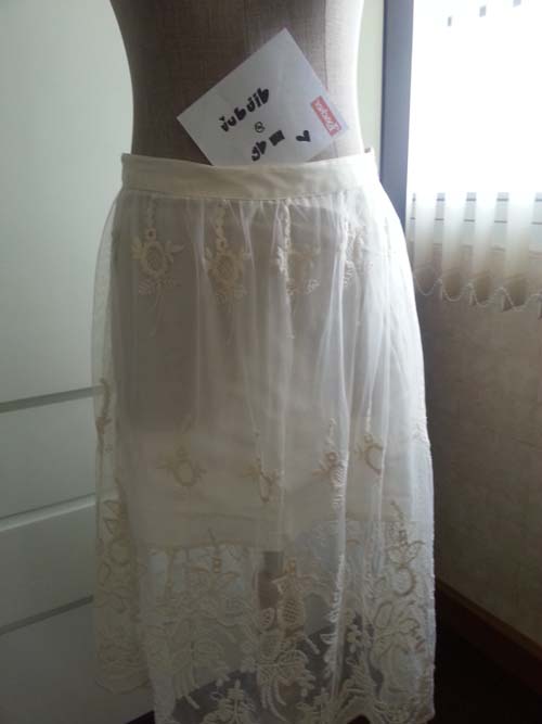 Cream Embroidered Lace Skirt size 8 ขาย 2,690