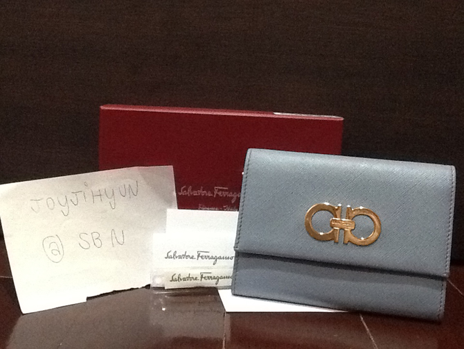 used like new ferragamo wallet หนัง saffiano เหมือน prada สีฟ้าคะ 5000 บาท