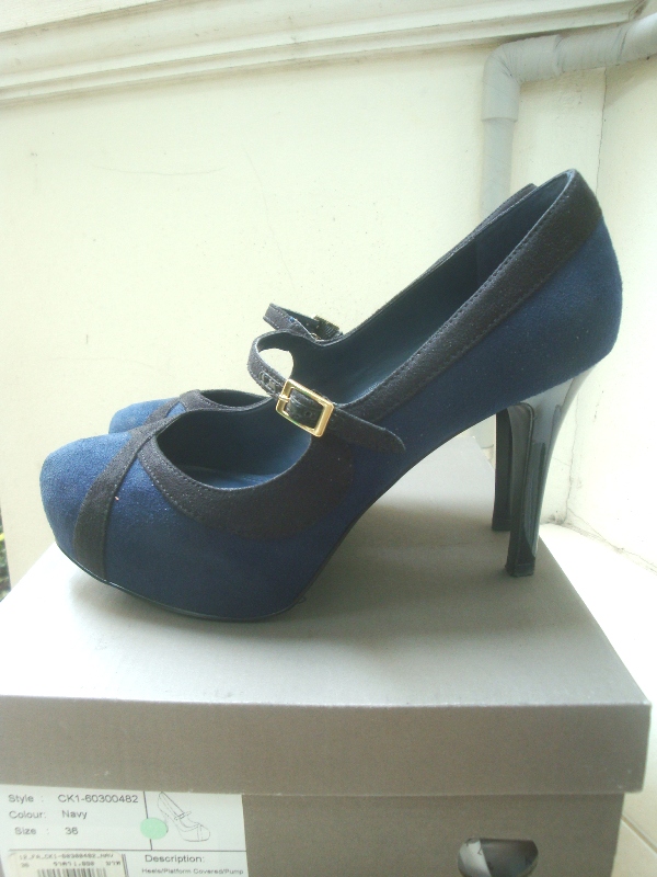 LIKE NEW CHARLES&KEITH : Size 36 หนังกลับสีน้ำเงินคาดดำ 1,990 ==> 1,200ค่ะ