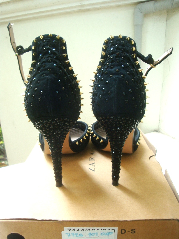LIKE NEW ZARA : Size 37 หนังกลับสีดำประดับหมุดเท่ห์มาก 5,990 ==>3,500