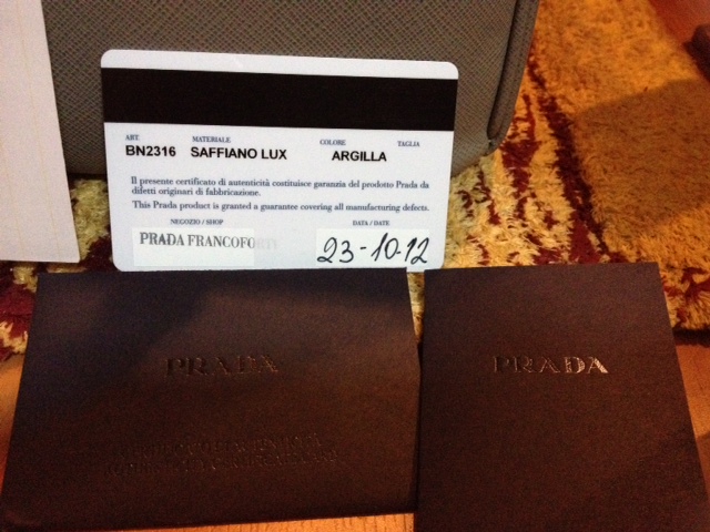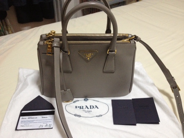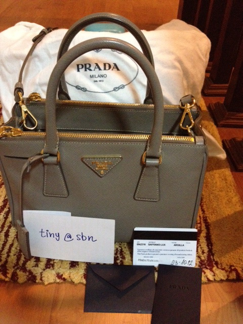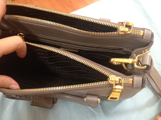 Used Like New Prada Saffiano 25 สี Argilla สีเทาอ่อน เรียบหรู คุณหนู ไฮโซ 2 ซิป 45000.- ลดเหลือ 43000.-ลดเหลือ 41,500.- กระเป๋าลงวันที่ 23/10/12 CF