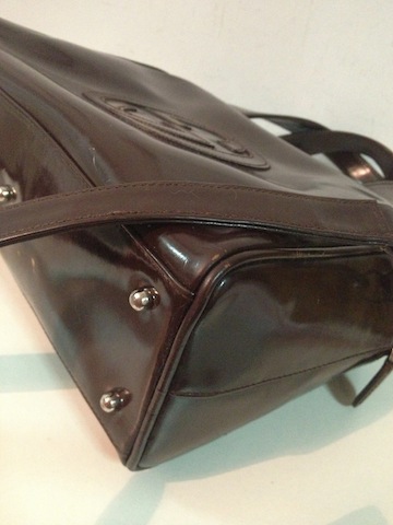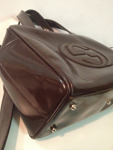 Gucci หนังแก้ สีม่วงมังคุต ขนาด 9 นิ้ว พร้อมสายสะพายยาว ด้านนอกดูดู มีรอยขนแมวตามรูป