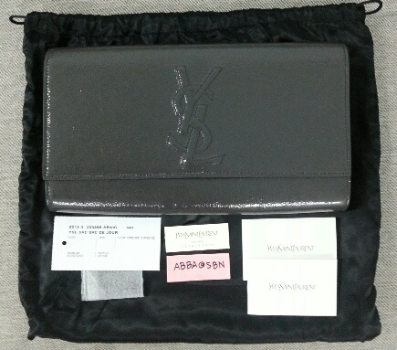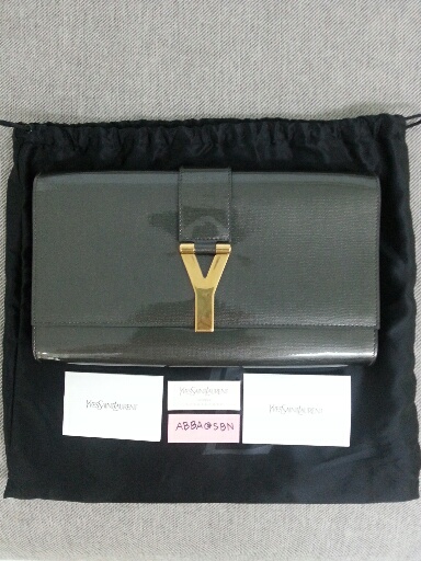 8.YSL Large Patent Clutchสีเทา ของใหม่ อุปกรณ์มีถุงผ้า+การ์ด ราคา 22,000 บาท