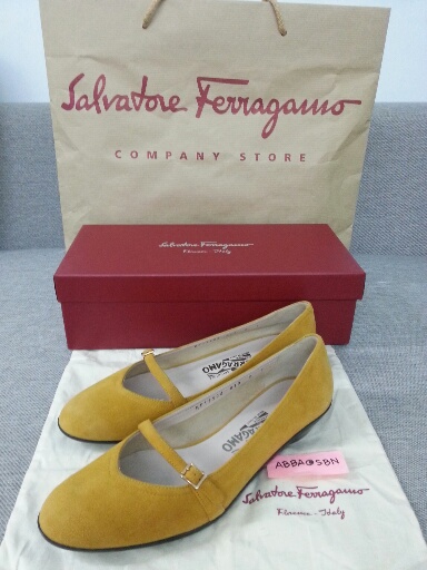 12.Ferragamo หนังกลับสีมัสตาร์ด size 8 (40) ของใหม่ อุปกรณ์มีถุงผ้า กล่อง ถุงกระดาษ ราคา 8,900 บาท