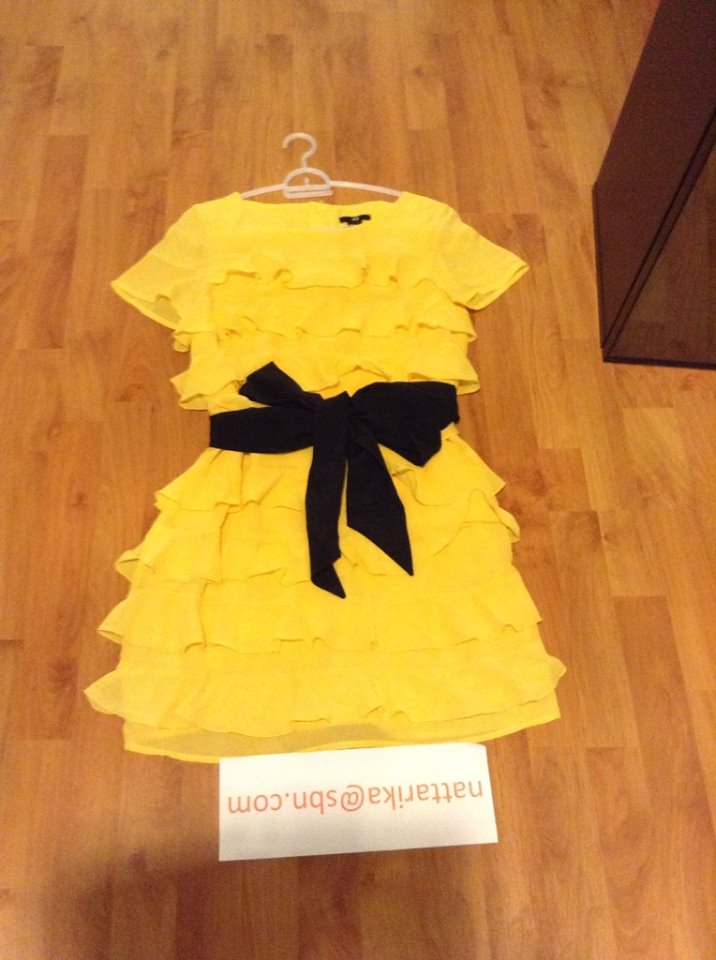 ♥♥–HM yellow dress size 40 หรือ uk10 เดรสสีเหลืองระบายผูกโบว์ที่เอวน่ารักสุดๆ