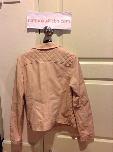 แจ๊กเก๊ตหนังสีชมพู สวยดูเหมืมอนใหม่มากไม่มีตำหนิใดๆเลยแม่ค้าใส่แค่ครึ่งวันเองค่ะรับรองไหม่จริงๆ อย่าลืมวัดเผื่อเวลาใส่เสื้อตัวในด้วยนะคะ