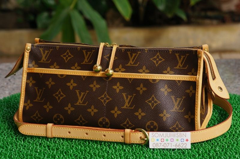 เป็นกระเป๋าทรงสะพาย ใบใหญ่จุของได้เยอะ ด้านหน้ามีกระเป๋าเล็กใส่ของได้เปิด-ปิดด้วยตัวกดล็อค ด้านในมีช่องใส่ของพร้อมซิบ และช่องใส่ของอีก 2 ช่อง มีสายสะพายลายโมโนแกรมปรับสั้นหรือยาวได้ ถอดสายไปใช้กับใบอื่นก็ได้นะคะ