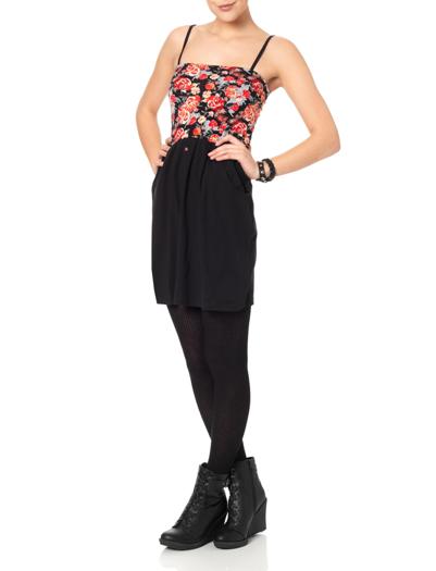 เดรสสายเดี่ยวปรับสายได้ช่วงบนผ้าลายดอกไม้สีสันสดใส