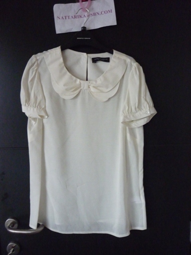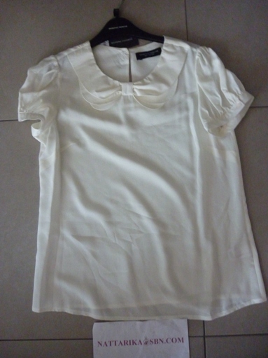 เสื้อสีขาวหวานๆคอบัวโบว์สองชั้น แขนตุ๊กตาน่าร้ากกกก