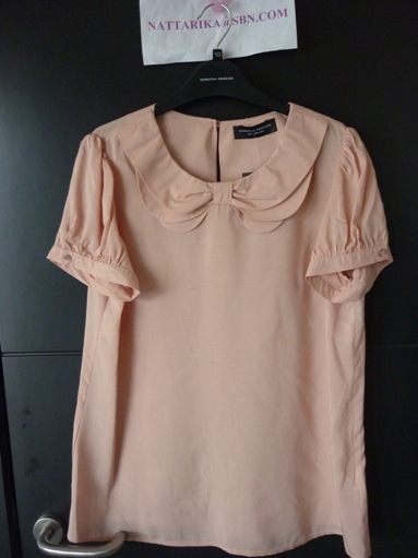 ♥♥– DoroThy PerKins pink bow collar blouse Size UK 10