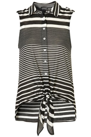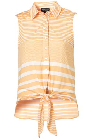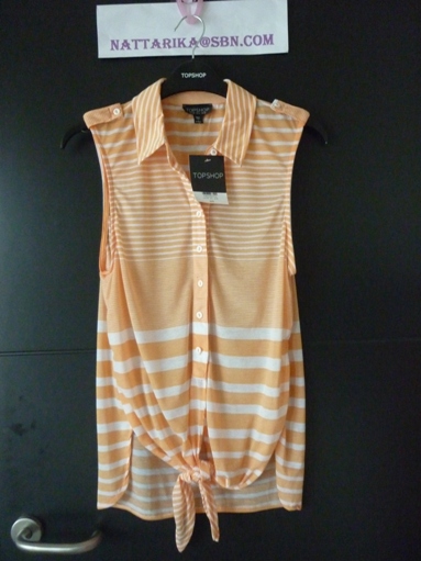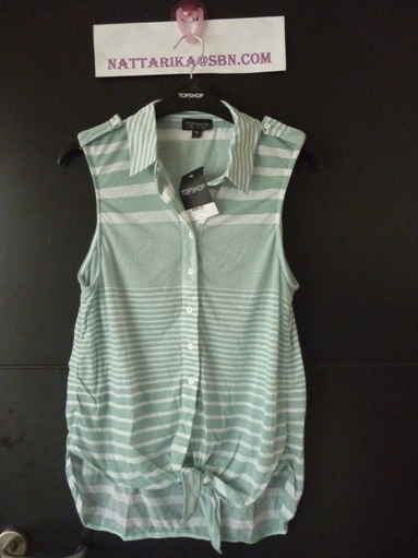 ♥♥–ToPShoP เสื้อแขนกุดปกเชิ๊ตผ้าลายน่ารักผูกปลายเสื้อมีสามสีให้เลือกr Size UK 10 ♥♥–