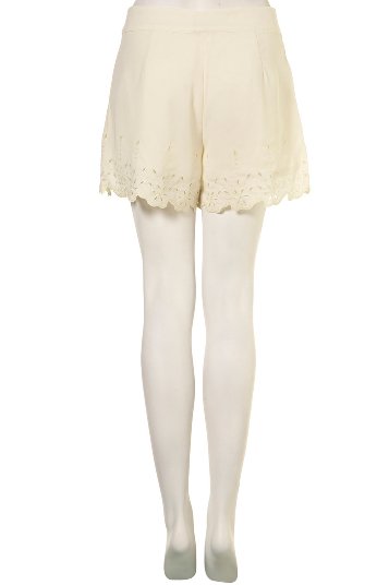 กระโปรงผ้าฝ้ายสีขาว ชายกระโปรงเป็นลูกไม้ถัก+เจาะลายดอกไม้น่าร้ากก
