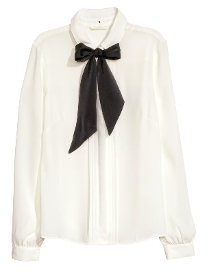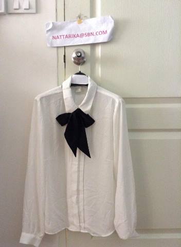 ♥♥–H@M Size 40 or UK 12 เสื้อสีขาวผูกโบว์สีดำน่ารักๆ