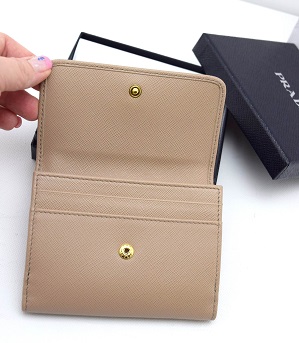 **พร้อมส่ง** PRADA Wallet กป. สตางค์ หนัง Saffiano สีคาเมโอ Cammeo มีช่องใส่แบงค์ ใส่การ์ด Price: 13,500 Baht Line: LuxiBaggi