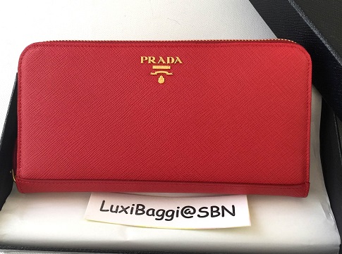 *พร้อมส่ง** PRADA Zip Around Wallet หนัง Saffiano รุ่นใหญ่ของพราด้า 1ML506 เปิดมามี 3 ช่อง ติดต่อมาค่า Line: LuxiBaggi