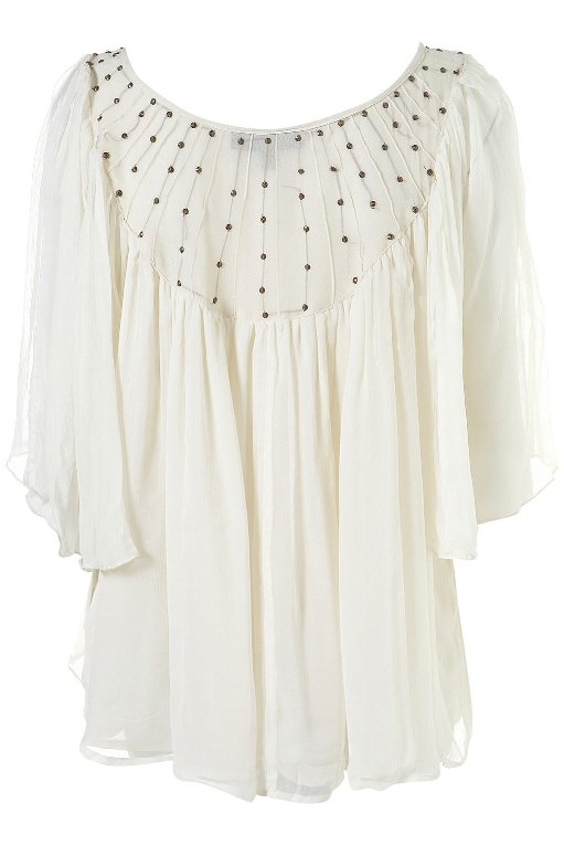 ♥♥– Miss Selfridge cream pearl collar blouse UK10 ♥♥–
