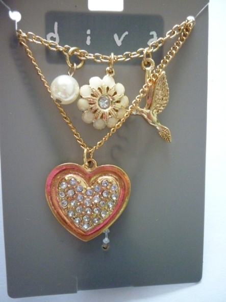 สร้อยทองห้อยจี้น่าร้ากมีไดอารี หัวใจ นก ของจริงน่ารักมากๆเลยค่ะ