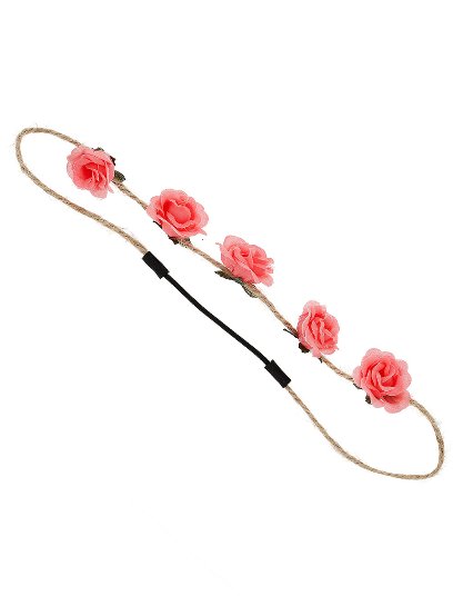 ที่คาดผมดอกกุหลาบเล็กๆสีชมพูหว้านหวานเป็นผ้าคล้ายผ้าแก้ว