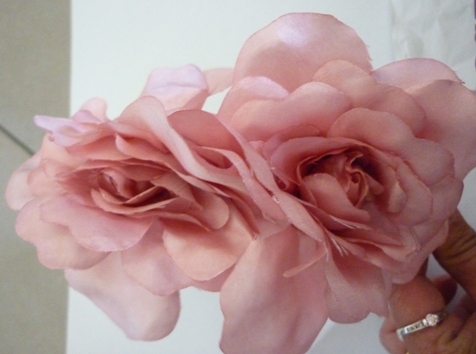 ที่คาดผมดอกกุหลายคู่สีชมพูเนื้อผ้าไหมสวยมากมายมีอันเดียวค่ะ