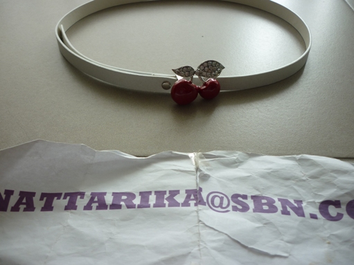เข็มขัดหนังสีขาวหัวเข็มขัดเชอรี่ฝังคริสตัลสีขาว น่ารักมากมาย มีเส้นเดียวค่ะ ขายราคา 990 บาทลดล้างสต๊อคเหลือแค่ 390บาทส่งฟรีค่ะ