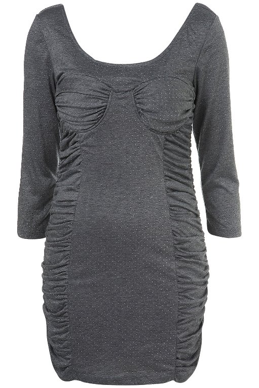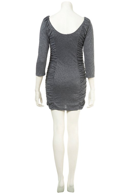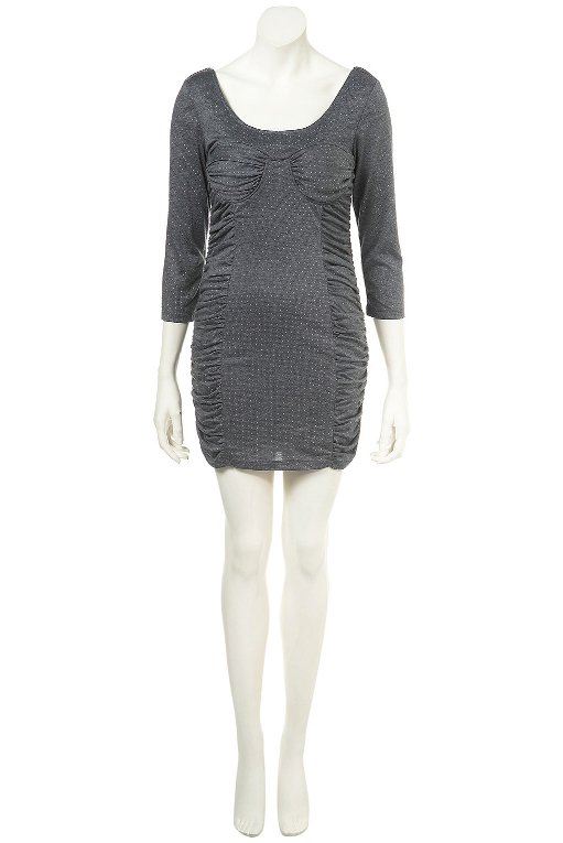 เดรสสีเทาดำ ทรงน่ารัก มีลายผีเสื้อที่กระเป๋า