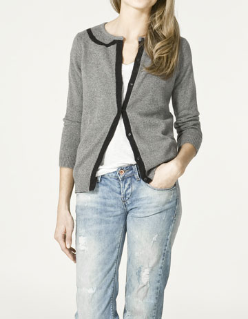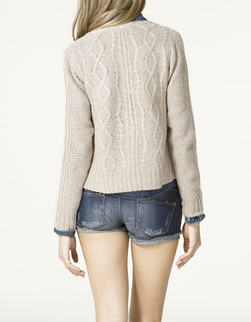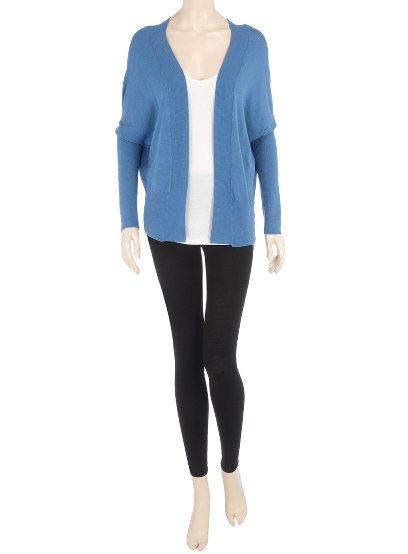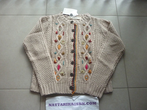 เสื้อคาดิแก้นสีครีมใส่แบบคลุมไม่มีกระดุม แขนประมาณศอกพับเบิ่ลปลายแขน