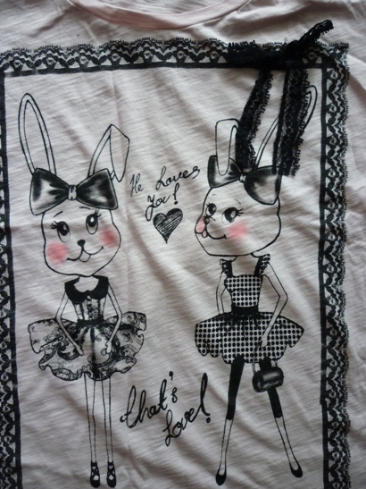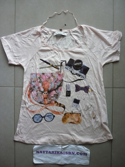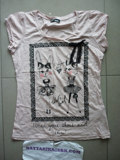 ToPShOp เสื้อผ้าคอตต้อนแขนสั้นสีชมพูหวานๆลายน่ารักทรงเข้ารูป