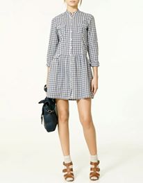 –♥♥ ZARA dress Size M เดรสลายสก๊อตโทนขาวฟ้า พับเบิ้ลแขนติดดุมประมาศอก