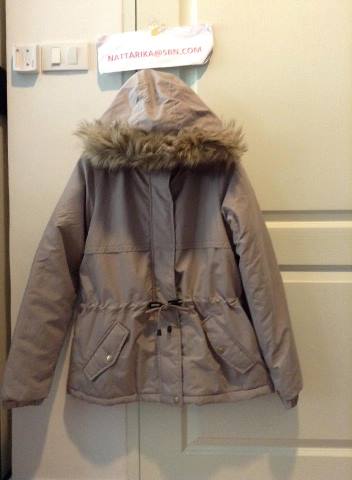 เสื้อแจ๊กเก๊ตสีเบจ มีฮุ้คขนแกะ+เฟอร์ใส่กันหนาว กันหิมะ กันฝน น่ารัก+อุ่นสุดๆ เอวรูดได้ค่ะ