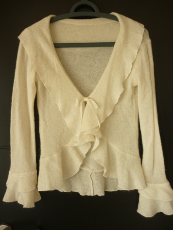 ♥♥–‘๏’>moggys คาดิแก้นผ้าไหมพรมสีขาวปลายแขนน่ารักมากๆ ฟรีไซด์