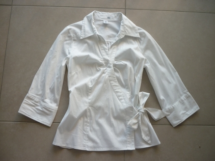 [COLOR="Magenta"][B]H@M size 36 เสื้อผ้าสแปนแด๊กซ์สีขาวทรงป้ายผูกที่เอว