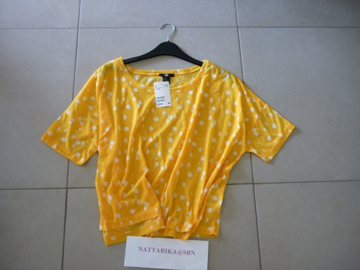 เสื้อผ้าคอตต้อนลายจุดขาวเหลืองน่าร้ากกก แบบมาใหม่ค่ะ