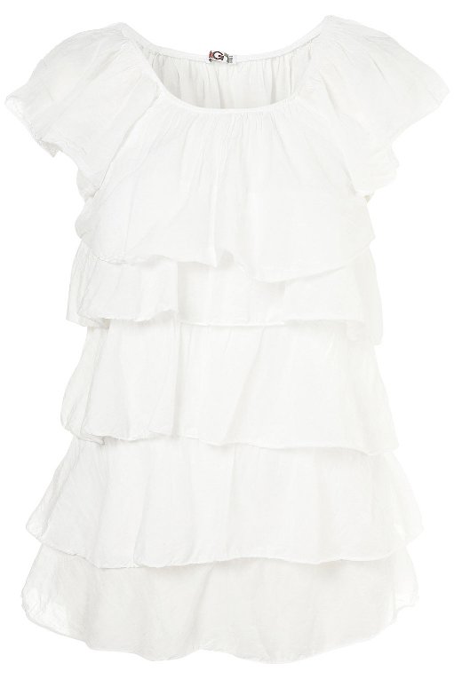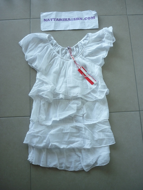 เสื้อผ้าฝ้ายสีขาวระบายเป็นชั้นๆ ทรงเข้ารูปนิดๆน่ารักดีนะคะ