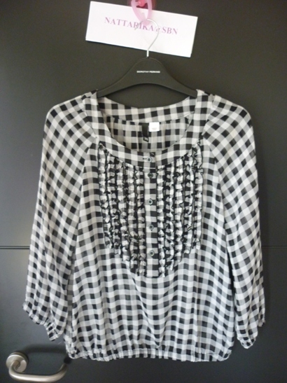 ♥ミ♥ミH@M size 36 เสื้อลายสก๊อตขาวดำ