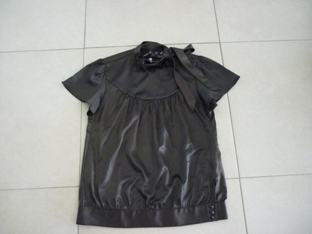 เสื้อผ้าซาตินสีดำ ผูกโบว์ที่รคอน่ารัก