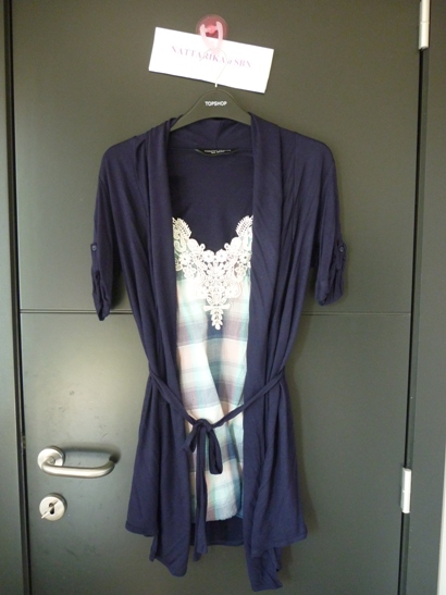 ตัวในสายเดี่ยวสก๊อตขาวน้ำเงิน ตัวนอกเป็นผ้าไหมพรมสีน่ำเงินแต่ไมหนาน่ะรคะ