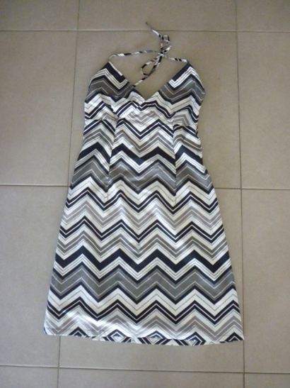 เดรสผ้าฝ้ายผูกคอลายขาวดำ สภาพใหม่มากแม่ค้าใส่ครั้งเดียว