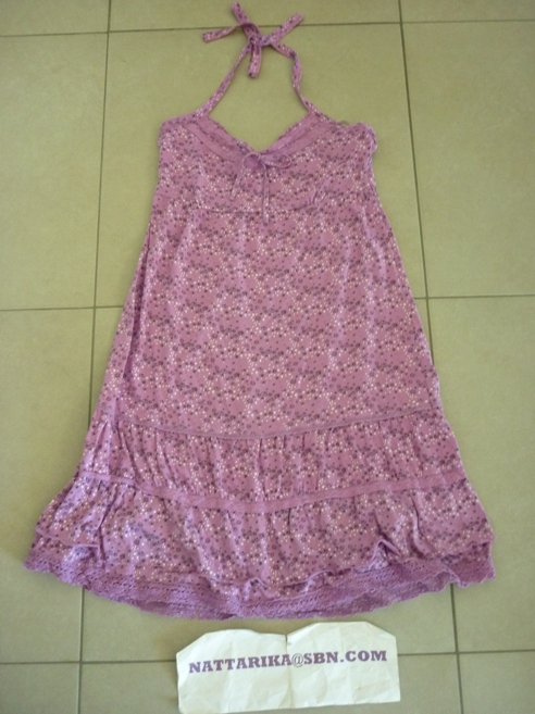 เดรสลายดอกไม้คล้องคอ โทนสีม่วงสวย