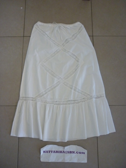 กระโปรงยาวผ้าฝ้ายสีขาว ดีเทลลูกไม้น่ารักๆ