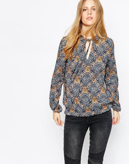 ♥♥–ESPRIT FLORAL BLOUSE SIZE M เสื้อลายดอกไม้ผูกโบว์ที่คอน่ารักๆ ใหม่ป้ายห้อยราคา2490บาท
